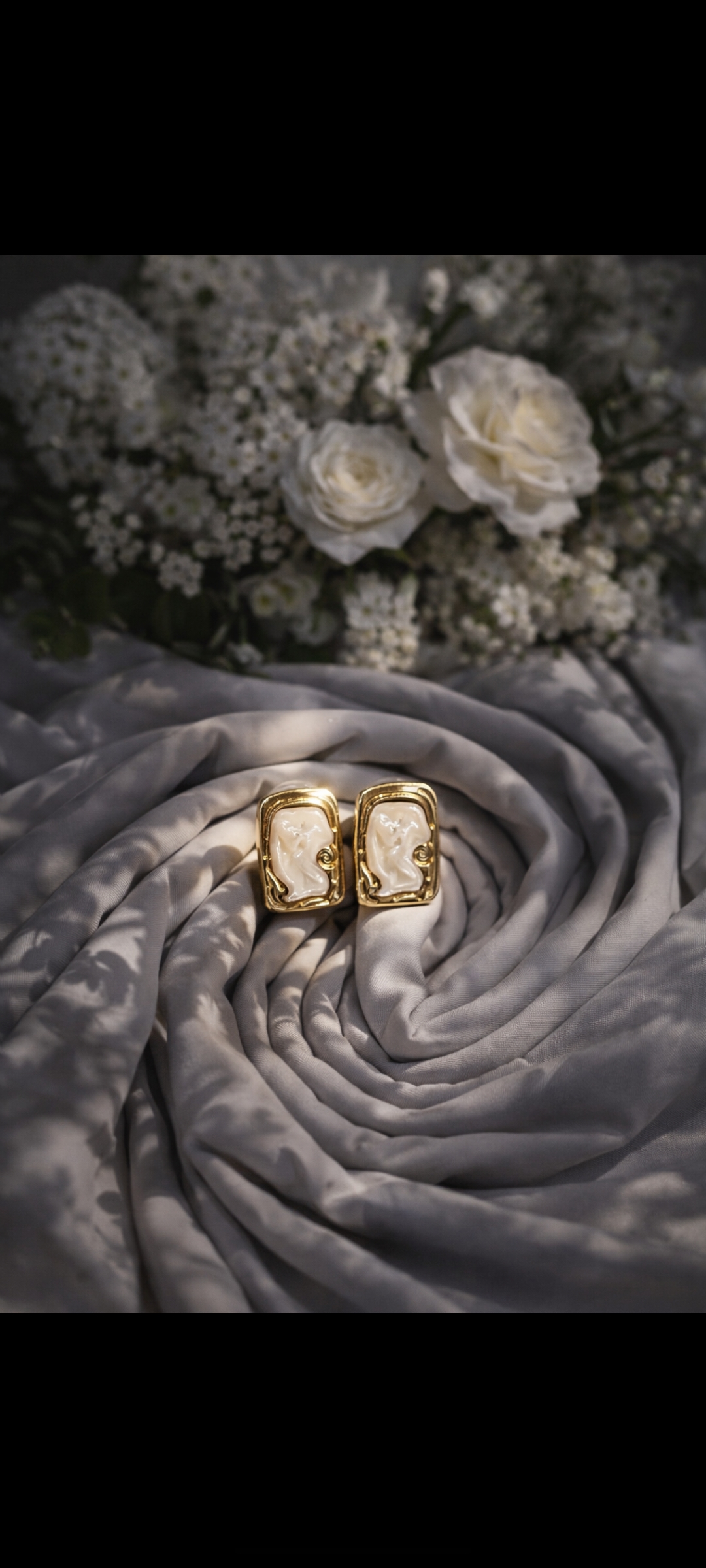 Gold tone vintage cameo studs with white carved face design—lightweight, classy & perfect for everyday and occasion wear.
